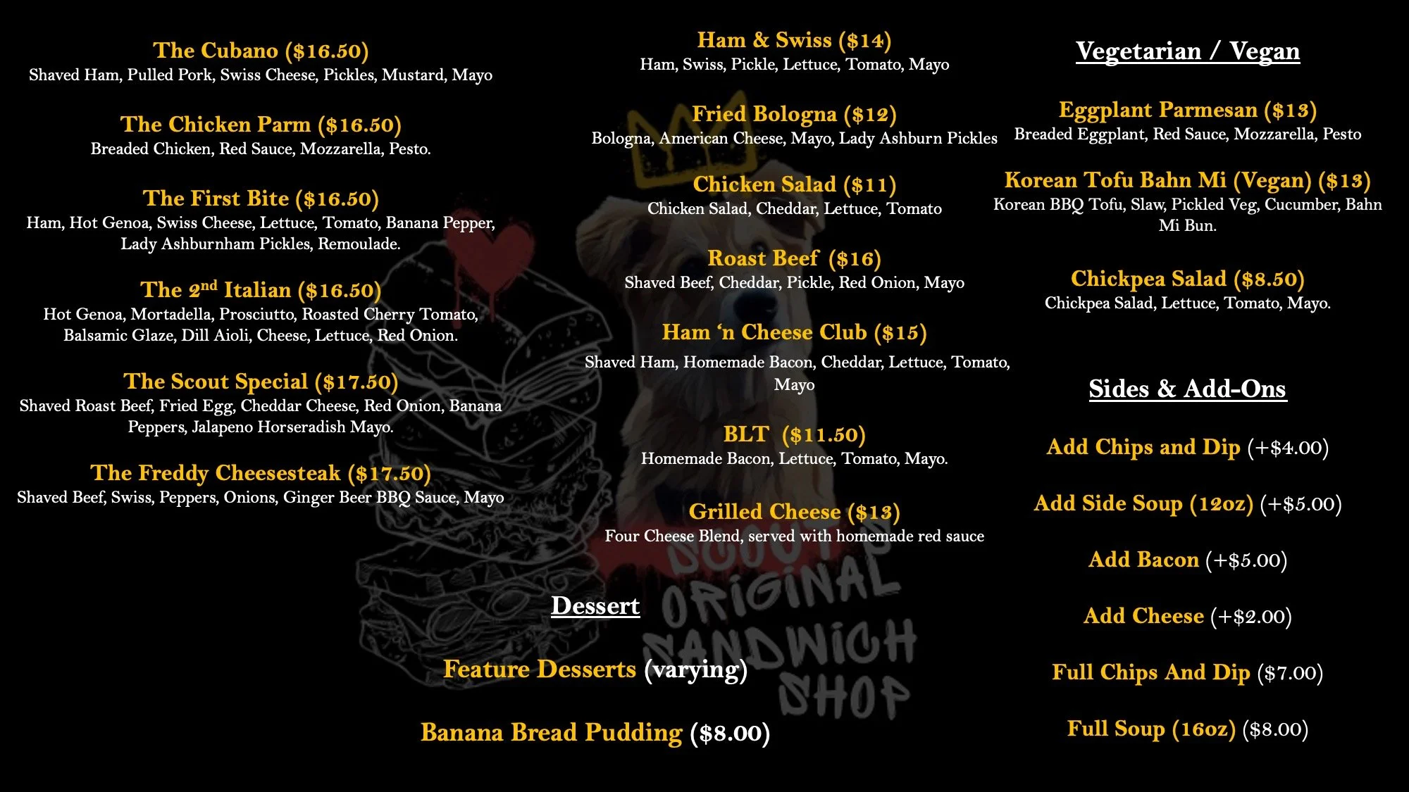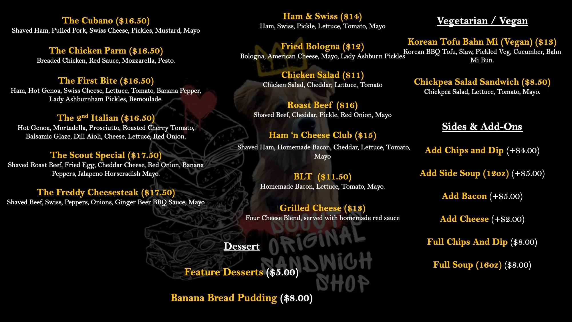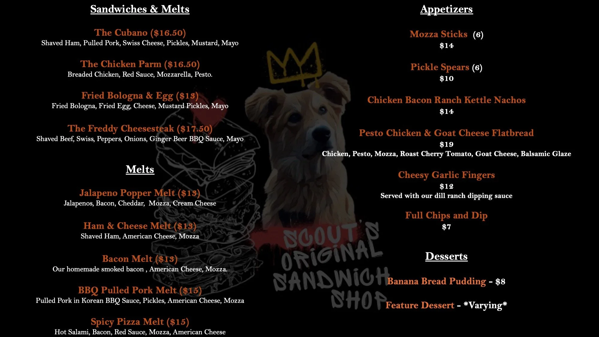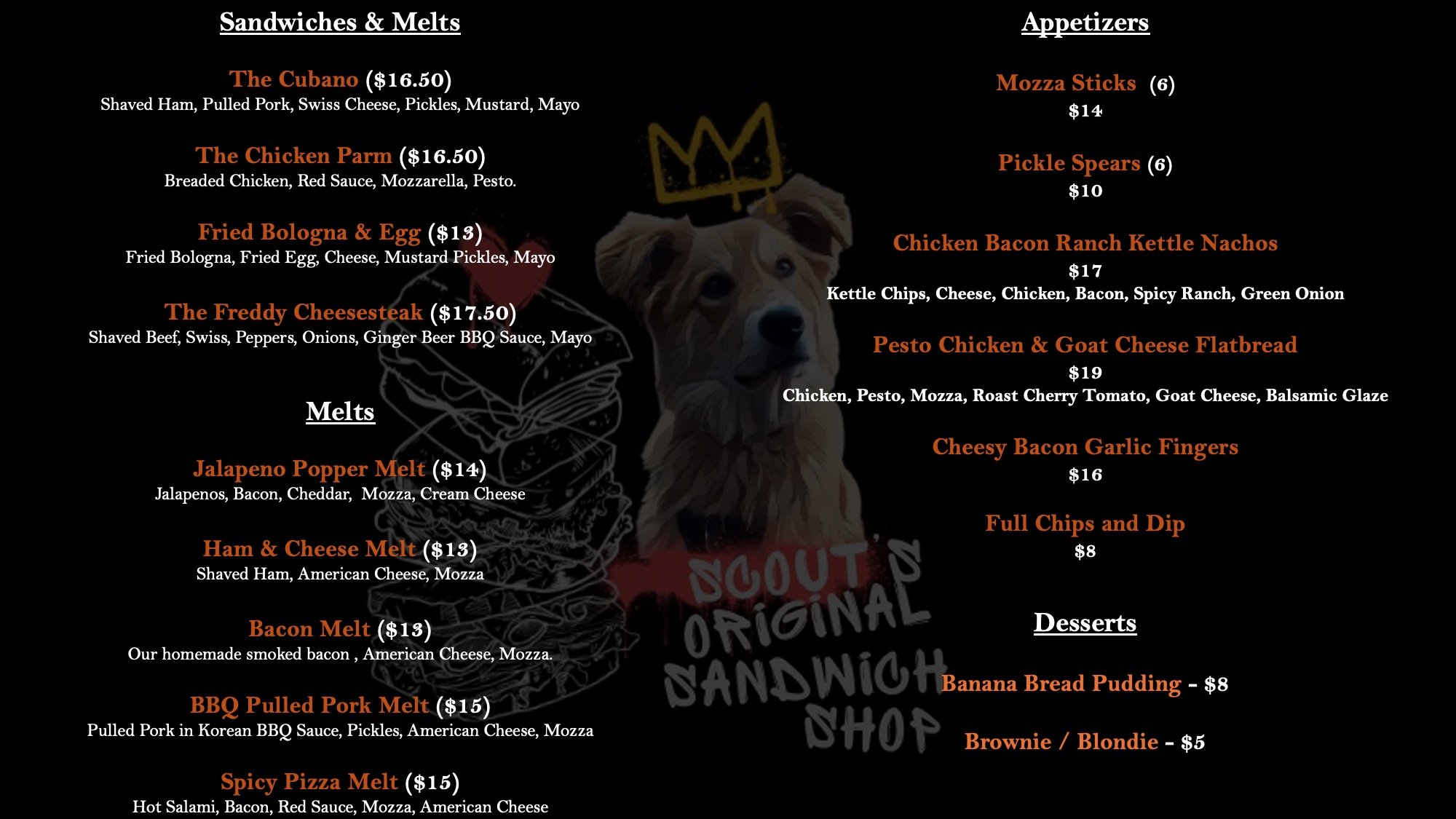 NIGHT MENU BELOW AVAILABLE AFTER 5PM